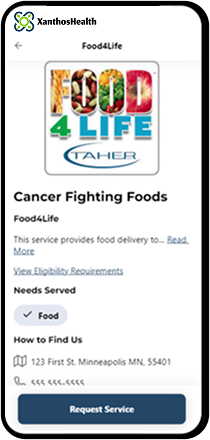 A patient selects a local organization for food delivery on treatment days